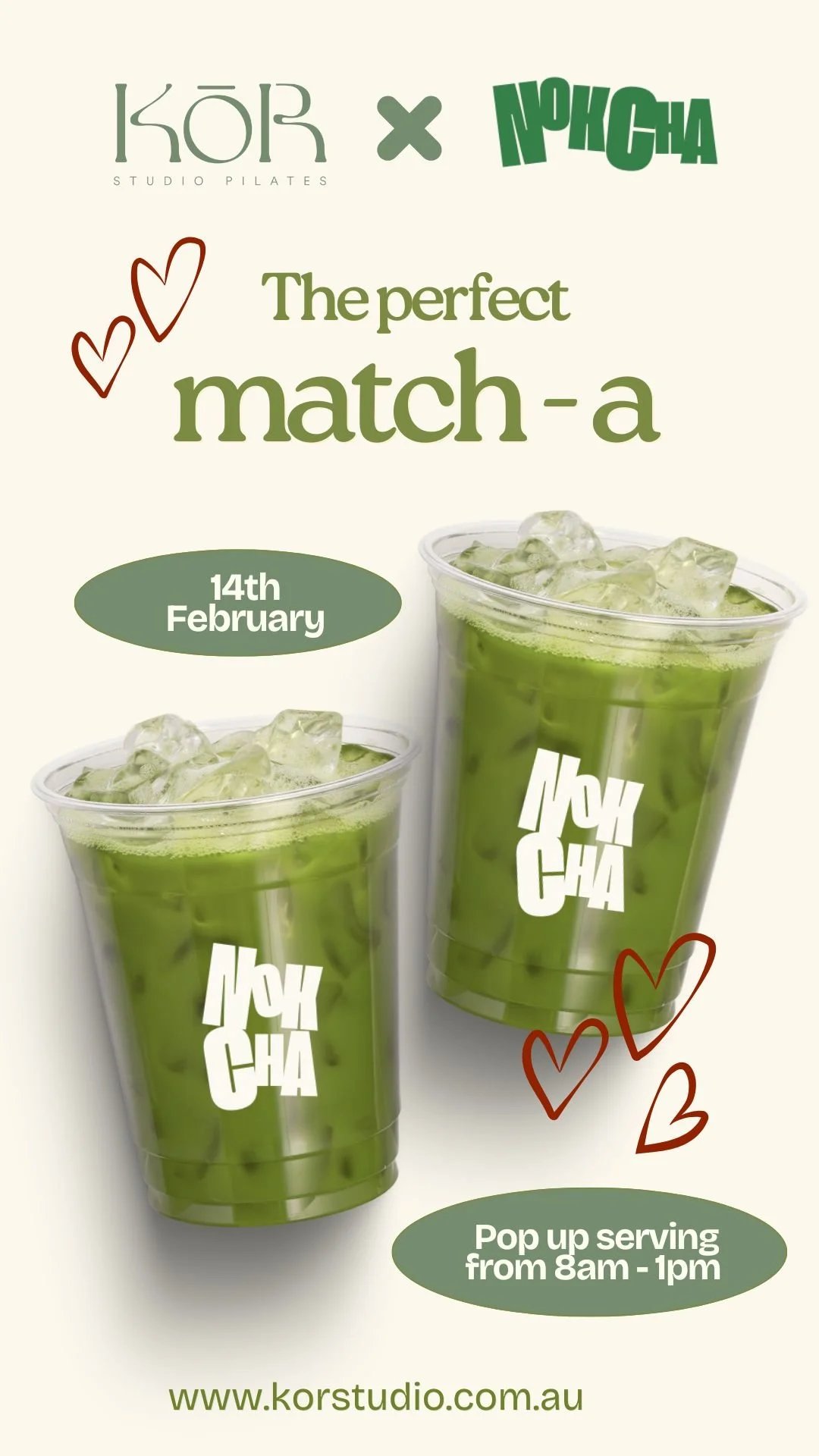 Complimentary matcha for those who book into the Vday Pilates Class. 🌹